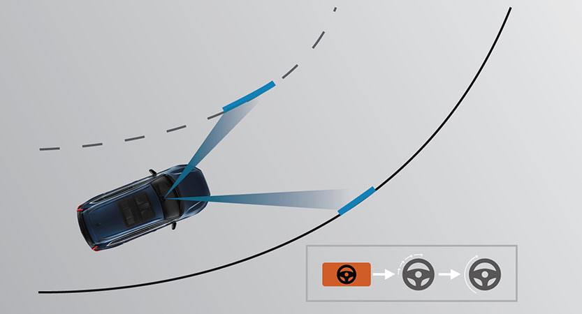 Hỗ trợ đánh lái để giữ cho xe luôn đi ở giữa làn đường, đồng thời hiển thị cảnh báo trong trường hợp xe đi chệch khỏi làn đường.